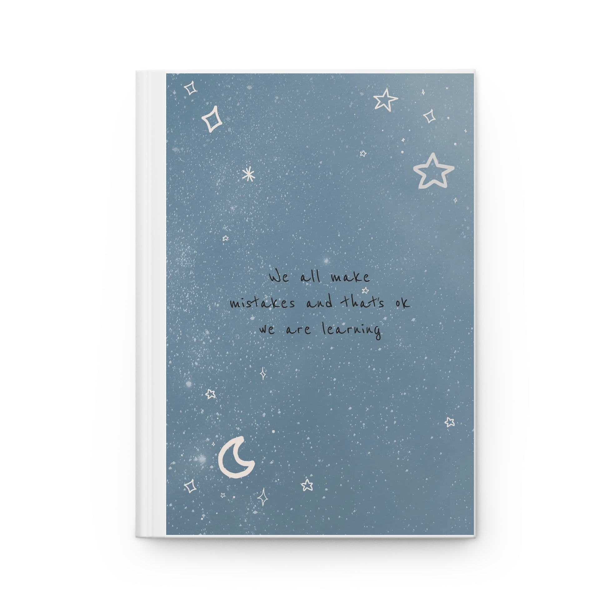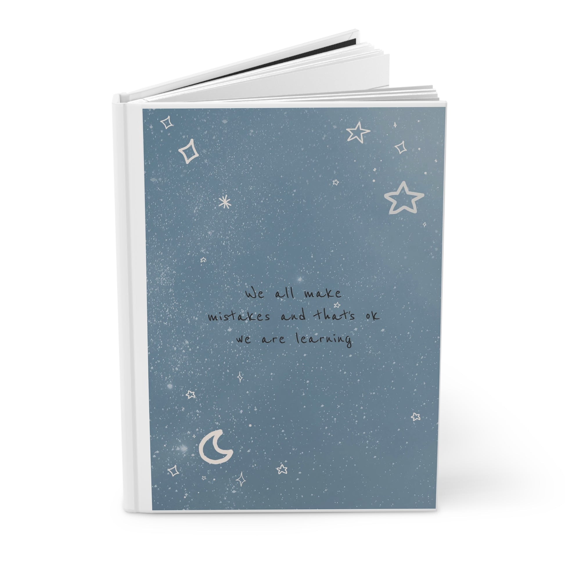 This Matte Hardcover Journal features the quote 'We All Make Mistakes and That's Ok' on its cover, giving a reassuring and positive vibe. Perfect for journaling, note-taking, or doodling, this journal is relevant for those who appreciate self-reflection and positivity. It is ideal for back to school, New Year's resolutions, or as a gift for someone starting a new chapter in their life.